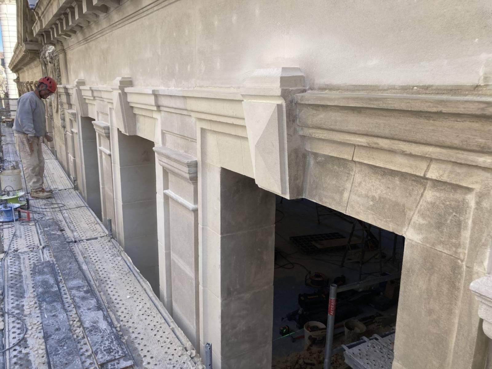 Réalisation d'ouvertures en pierre sur la façade de la Banque de France de Marseille